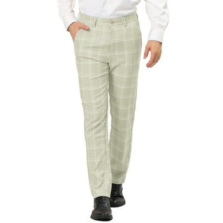 Lars Amadeus Men S Plaid Dress Pants Regular Fit Flat Front Checked Trousers Gray Green 30 Walmart Ca